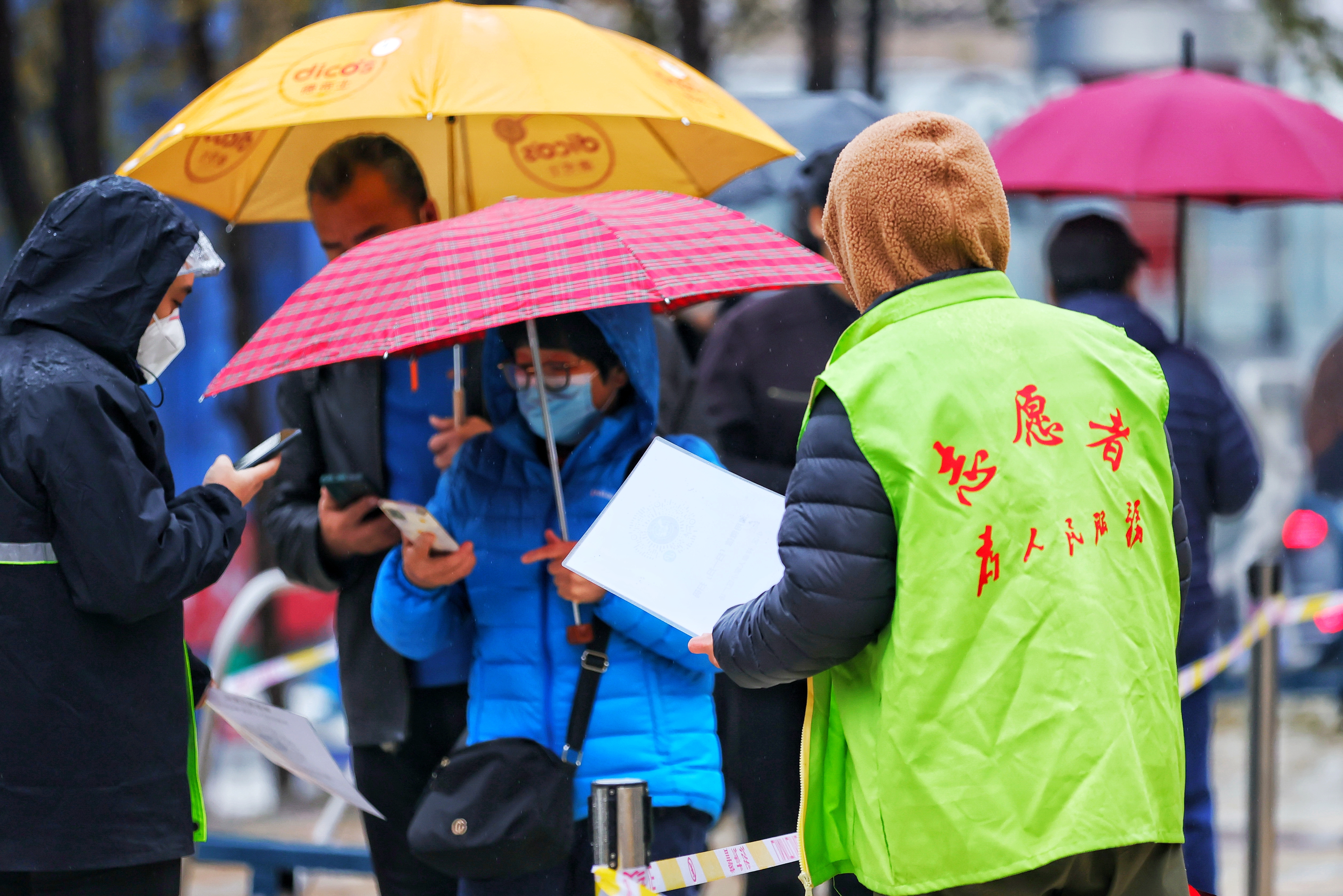 在埃德蒙頓路祥泰人家小區(qū)廣場核酸檢測取樣點(diǎn),轄區(qū)居民響應(yīng)政府號召,有序冒雨排隊(duì)等待核酸檢測取樣。附近的商家給工作人員送來燒好的熱水,感謝這些在冰雨中無私奉獻(xiàn)的工作人員。